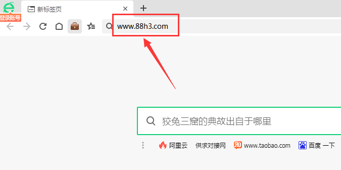 1、打开360浏览器,地址栏输入要添加www.88h3.com网页地址,回车。