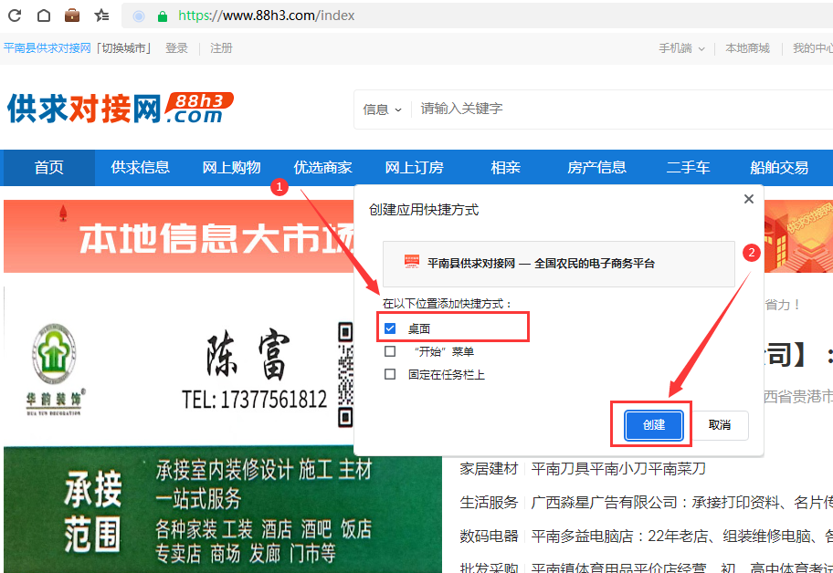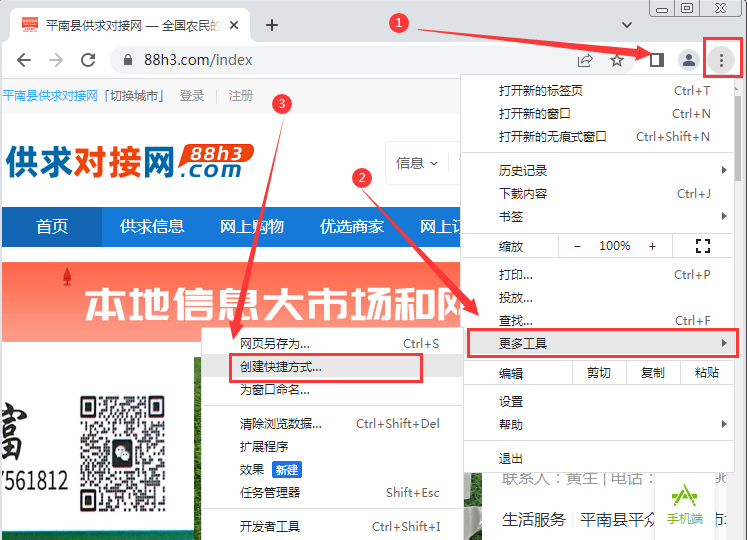 谷歌浏览器怎么把“供求对接网”网页保存到桌面?